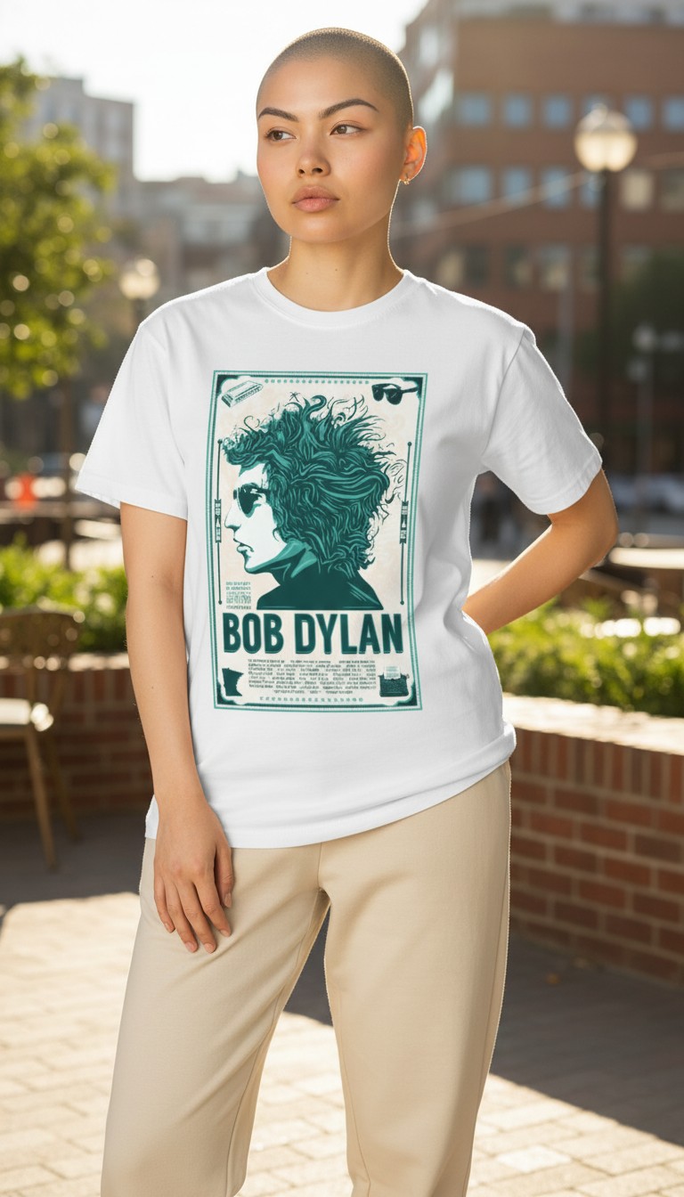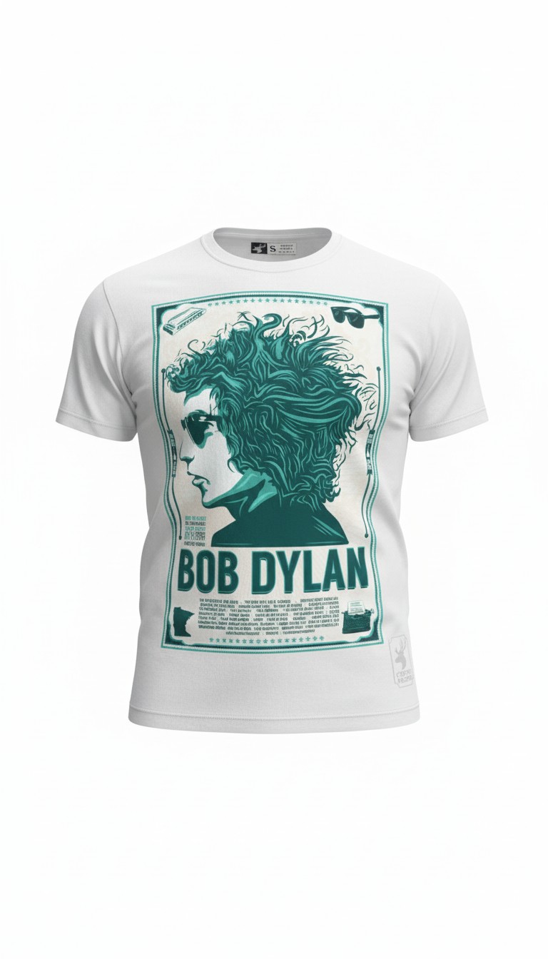 Celebra el legado del Nobel de literatura y leyenda del rock con nuestra edición premium de Bob Dylan. Un diseño artístico de inspiración vintage que captura el perfil icónico del bardo de Minnesota en un vibrante contraste de tonos turquesa. Confeccionada en algodón 100% de alto gramaje, es la prenda definitiva para quienes valoran la profundidad lírica y el estilo urbano atemporal.