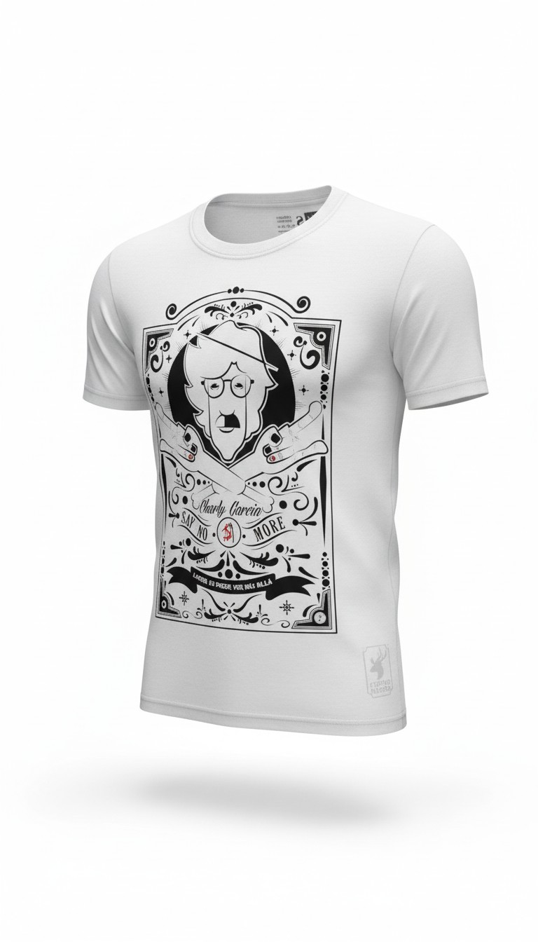 Hay artistas que definen una cultura entera, y Charly García es el arquitecto del rock en nuestro idioma. Ciervo Negro presenta esta pieza exclusiva inspirada en la era “Say No More”, donde la vanguardia y la irreverencia se fusionan. El diseño destaca por su composición simétrica y detalles ornamentales que rodean el perfil del artista, creando una prenda que es, en sí misma, una declaración de principios artísticos.