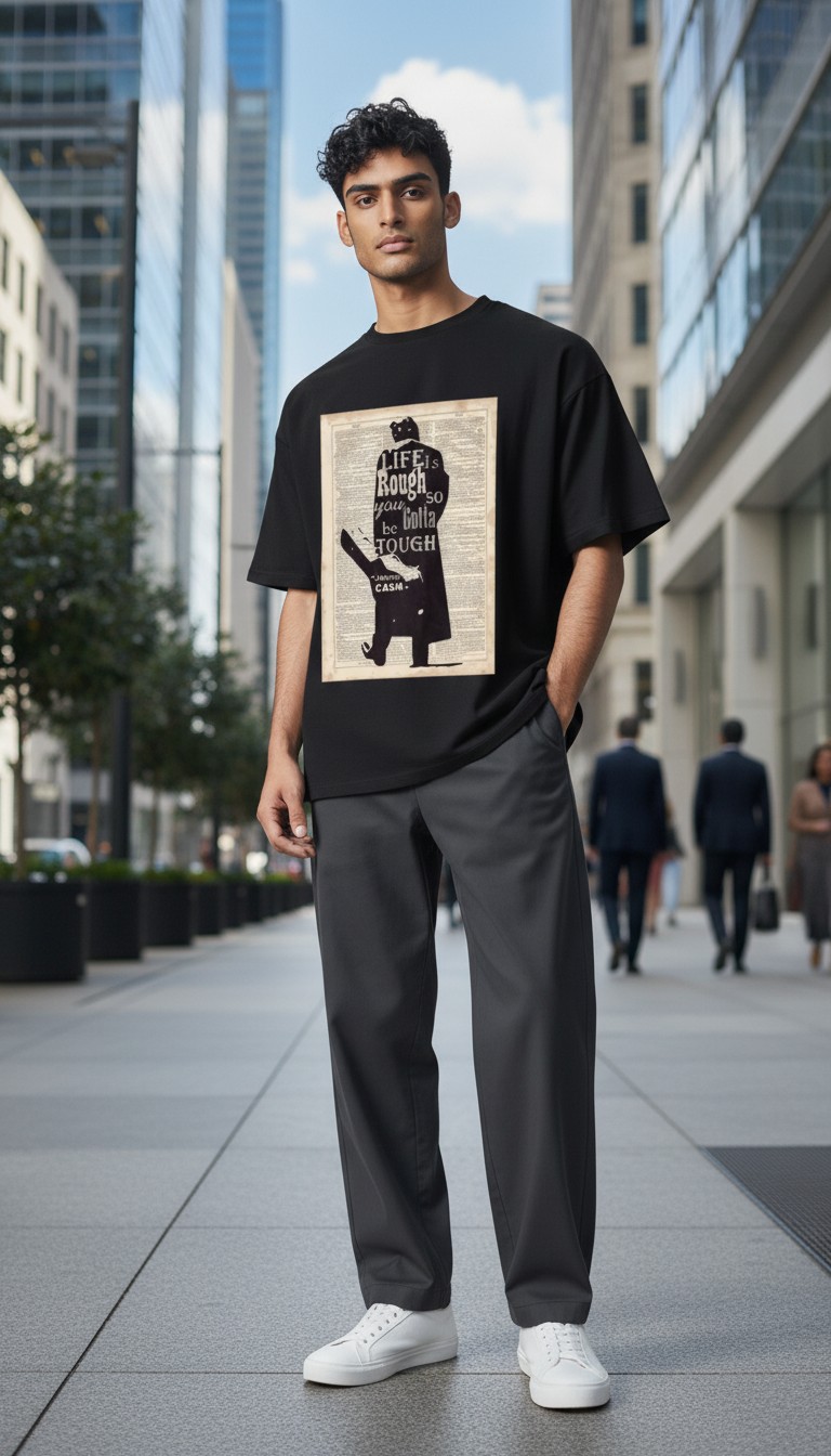 Para proyectar la actitud “Man in Black”, combínala con denim oscuro y botas de cuero. Al ser una pieza con una impresión artística detallada, requiere cuidados específicos para preservar su historia: