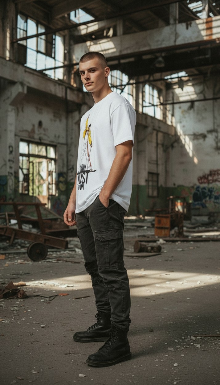 Blanco Óptico Superior: Tejido seleccionado por su luminosidad y pureza, sirviendo como el lienzo perfecto para resaltar la iconografía de la banda.