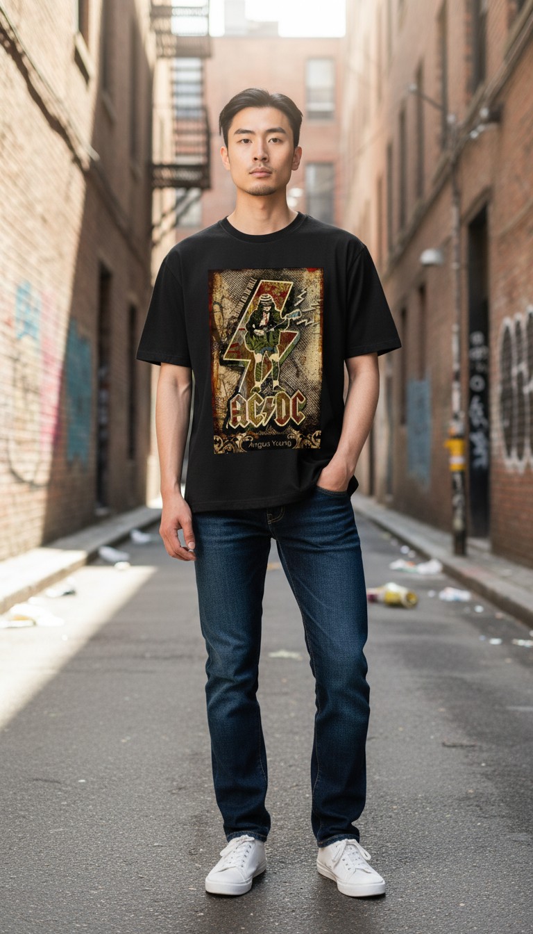 Camiseta Rock AC/DC Angus Young – Premium Urban Edition – Ciervo Negro